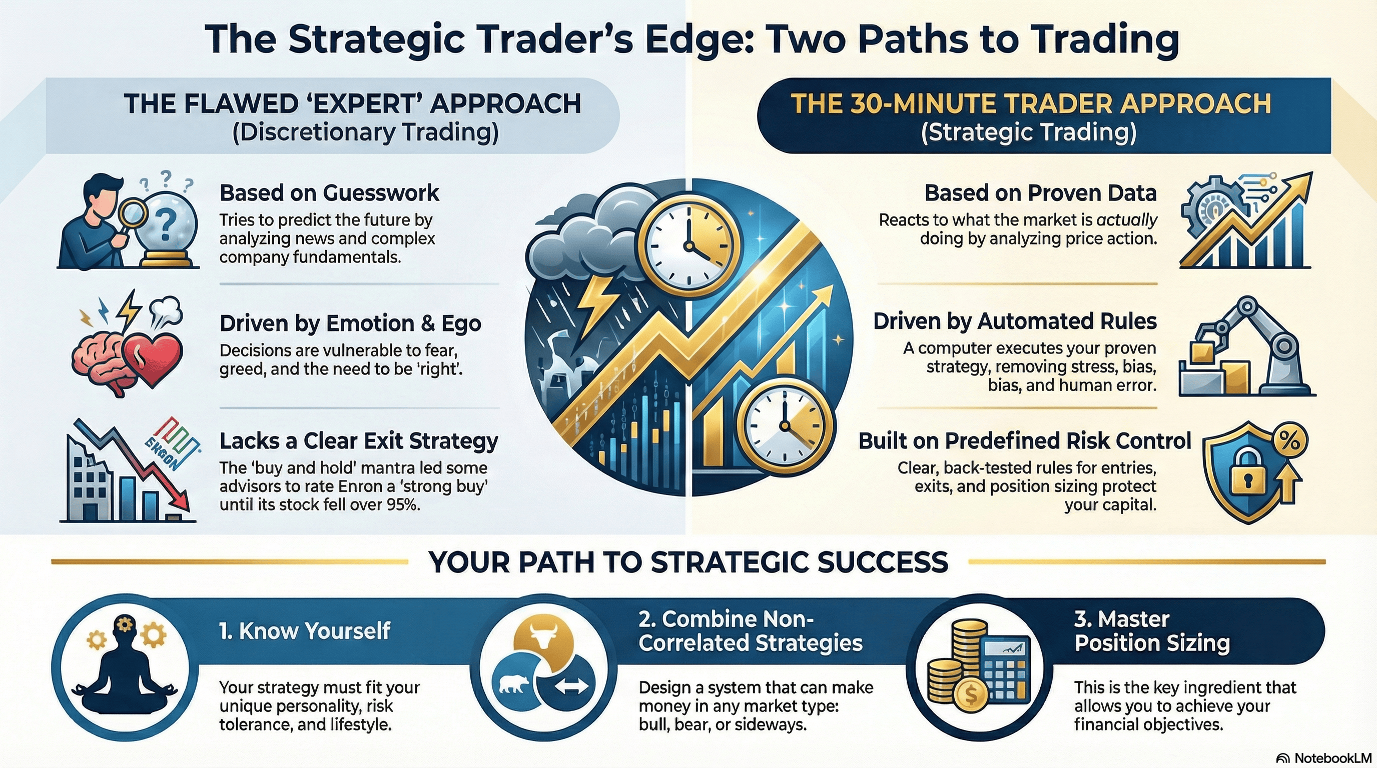 “The 30 Minute Stock Trader” is not your typical investing book. I don’t waste time on vague generalities about fundamentals and abstract concepts. In the book, I walk through how structured, rules-based trading systems are designed and applied, with an emphasis on discipline, risk control, and repeatability.
